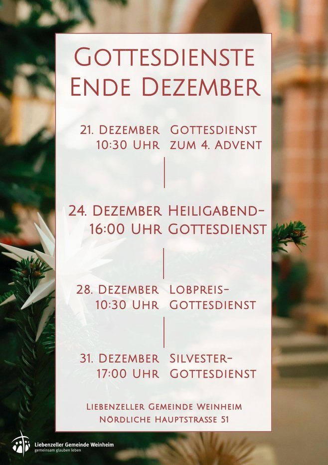 An folgenden Tagen feiern wir Ende Dezember Gottesdienste: