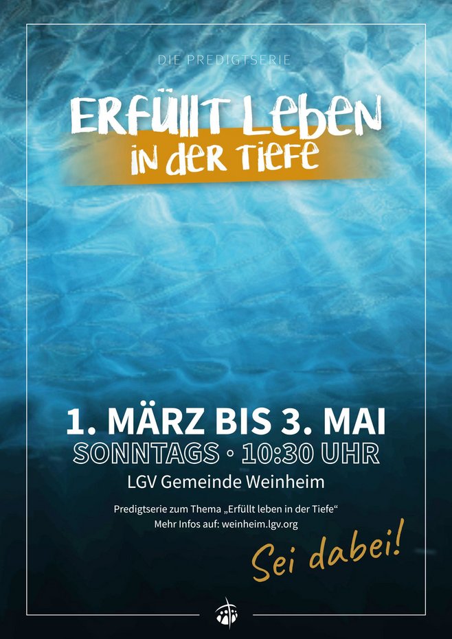 Wir befinden uns in der Predigtreihe "erfüllt leben in der Tiefe" und laden herzlich zum Gottesdienst um 10:30 Uhr mit folgenden Themen ein: